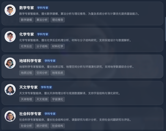 SciMatrix is the first general-purpose AI agent-scientist collaboration platform for interdisciplinary research, developed by the Computer Network Information Center (CNIC) of the Chinese Academy of Sciences. The platform is dedicated to building a new research ecosystem characterized by “human–AI integration, multidisciplinary cooperation, and cross-domain synthesis.” Since the launch of its internal beta testing in November 2024, SciMatrix has undergone continuous iterative upgrades. The new version features a more focused core collaboration model, an expanded roster of 25 AI agent experts, a newly introduced chatroom-style interactive interface, and mobile device adaptation.